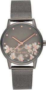 Nine West Women’s Floral Dial Mesh Bracelet Watch