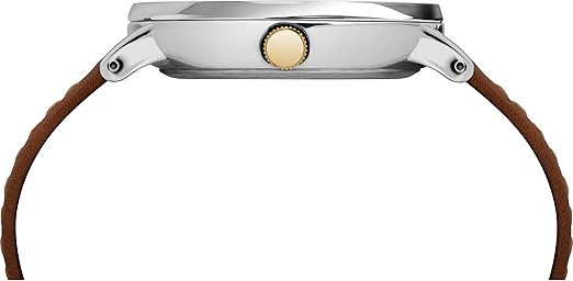 - Adjustable tan 20mm genuine leather strap fits up to 8-inch wrist circumference
